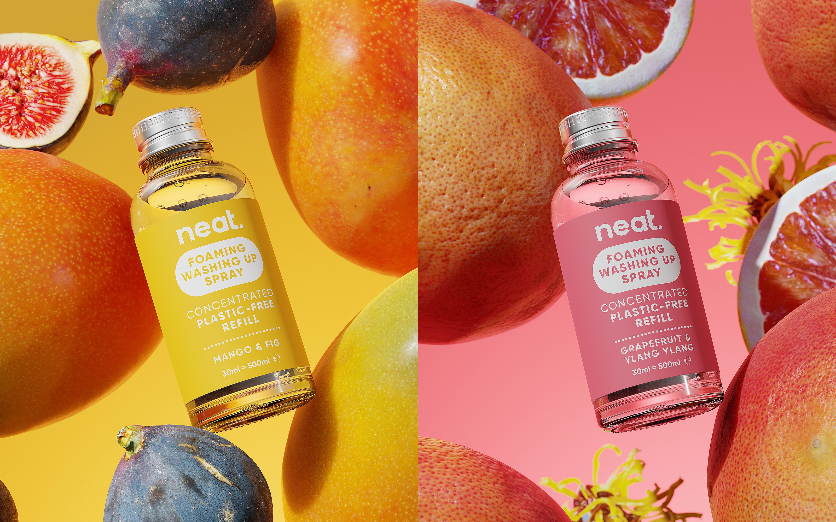 To bring Neat’s Foaming Dish Spray to life, we focused on crafting clean, vibrant, and highly detailed 3D renders that seamlessly fit the brand’s identity. The project included a series of styled compositions, from product hero shots to lifestyle-inspired kitchen setups, ensuring versatility across digital and print platforms. The renders emphasized the spray’s foaming action, fragrance ingredients, and premium packaging, using carefully controlled lighting, texture accuracy, and refined material finishes. By maintaining a cohesive visual language, we delivered a suite of engaging visuals that reinforce Neat’s commitment to sustainability and innovation in home cleaning.
